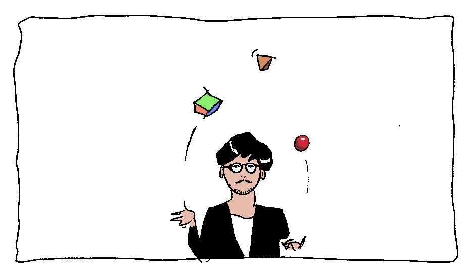 Going in, I wanted to understand if there was anything in the development that sets his process apart from what I’m familiar with. How does Kojima write and what inspires him, how are the playful mechanics prototyped, and how does he handle production, scope, and being a leader?